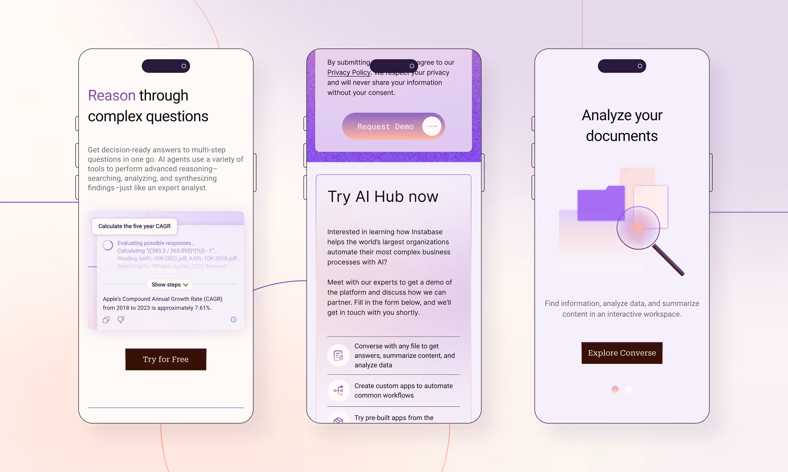 Every element — from the smallest animation to the overarching design system — was built to amplify Instabase’s position as a leader in enterprise AI, giving them a digital presence as dynamic as the technology they deliver.