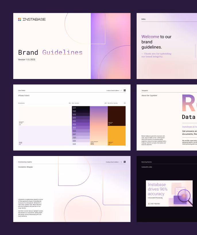 Drawing inspiration from Instabase’s mission to simplify the world’s most complex processes, we crafted a brand identity that was modern, flexible, and unmistakably theirs. Clean typography, bold visuals, and a refined color system worked together to project both trust and innovation.