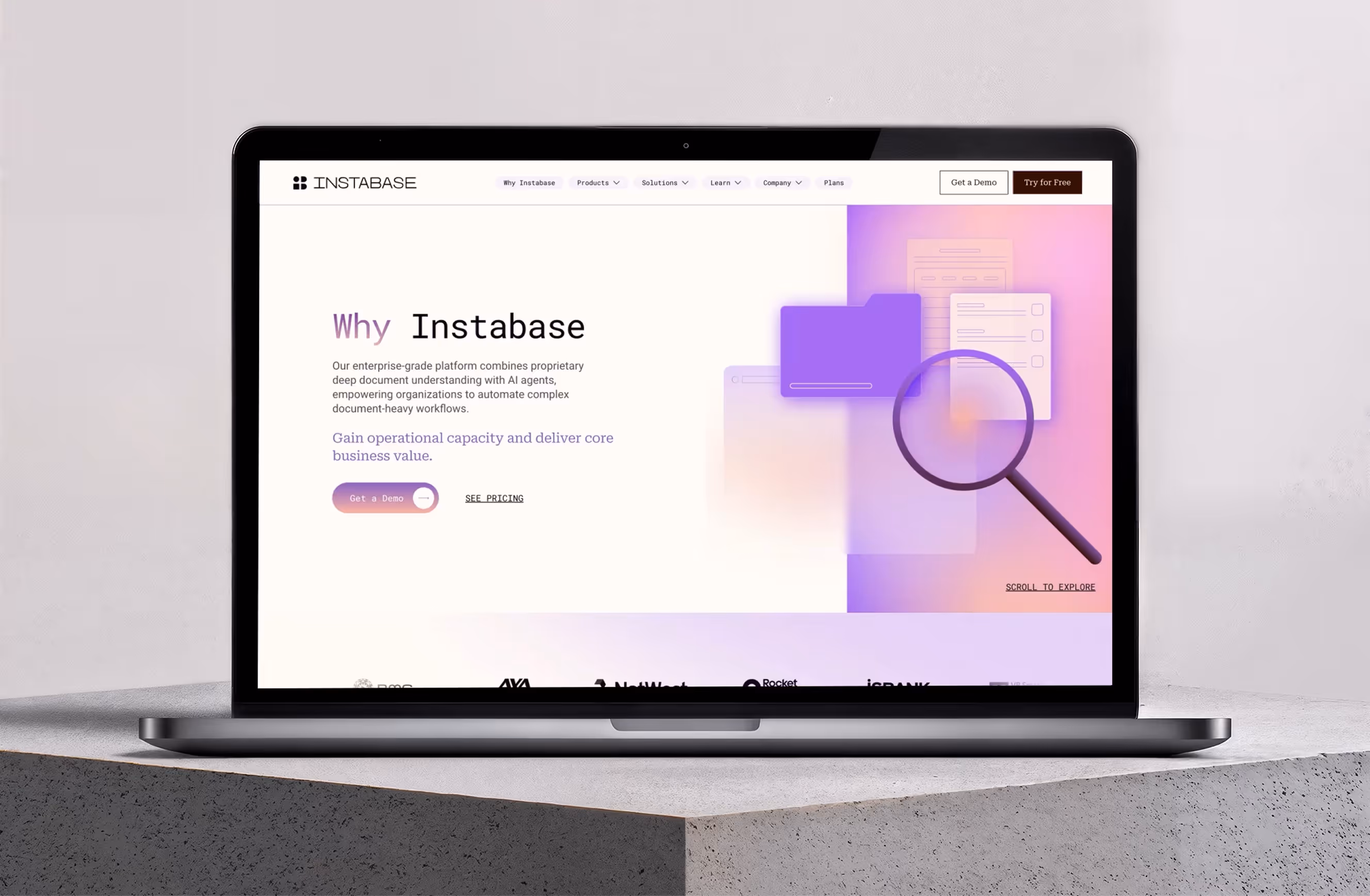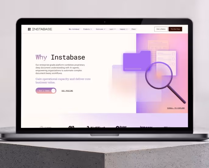 Instabase had built a powerful platform for enterprise AI, but their brand and digital presence weren’t keeping pace with the company’s innovation. The existing website was functional but lacked the visual distinctiveness and clarity needed to stand out in a competitive sector. Their story, vision, and technology required a design system that could communicate both trust and innovation while engaging a global audience.