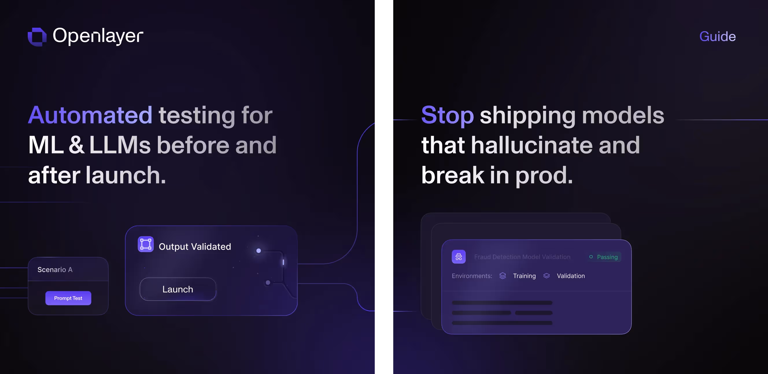 Our creative team knew that the visual redesign needed to be bold and streamlined throughout to turn complex AI processes into opportunities for AI-forward enterprises. So, we built a cohesive design system that captured Openlayer’s advanced technology while making its value instantly clear.Our work included creating engaging motion graphics that amplified the company’s tech-forward identity. We also designed beautiful, cutting-edge process diagrams to simplify and visualize complex AI workflows.